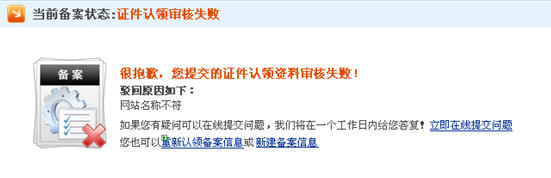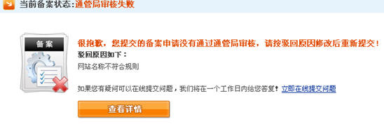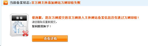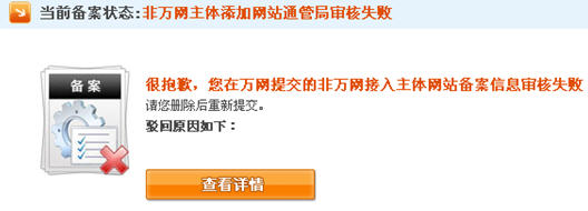18、非萬網(wǎng)主體添加網(wǎng)站通管局審核失敗