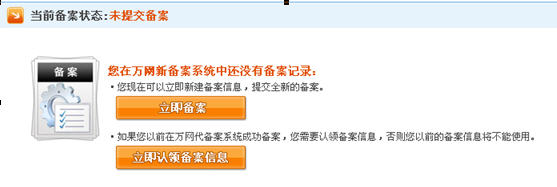 在萬網(wǎng)新備案系統(tǒng)中還沒有備案記錄