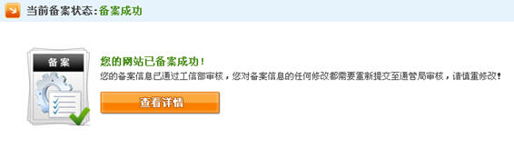 4、備案成功狀態(tài)