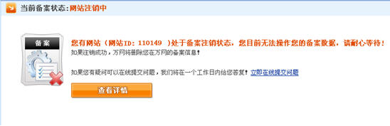 通過萬網(wǎng)工作人員正在注銷有備案號(hào)的