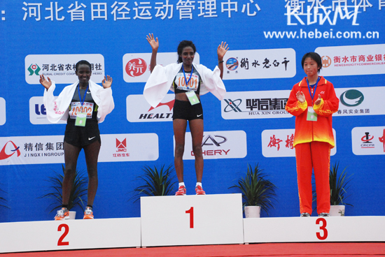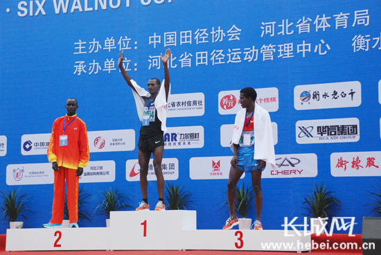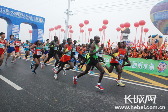 長(zhǎng)城網(wǎng)衡水9月22日電(王永宏 扈煒)今日8時(shí)02分,2012衡水湖國(guó)際馬拉松賽鳴槍開(kāi)跑,在衡水湖國(guó)際馬拉松賽廣場(chǎng),來(lái)自世界26個(gè)國(guó)家和地區(qū)的參賽選手及馬拉松愛(ài)好者沖出起點(diǎn)。經(jīng)過(guò)激烈角逐,來(lái)自埃塞俄比亞選手雷格塞·海路·梅克楠以2小時(shí)8分7秒、黛米西·埃塔勒瑪胡·基達(dá)妮以2小時(shí)28分3秒的成績(jī)包攬全程馬拉松賽男女組冠軍。